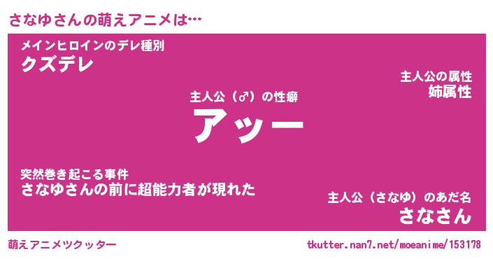 | ヘコむあだ名 | 『さなにゅー』『なまこ酢』 |