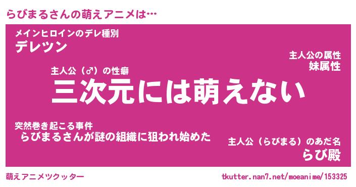 | 2回繰り返すあだ名 | 『らびらび』『ららびび』『ぬめぬめ』 |
