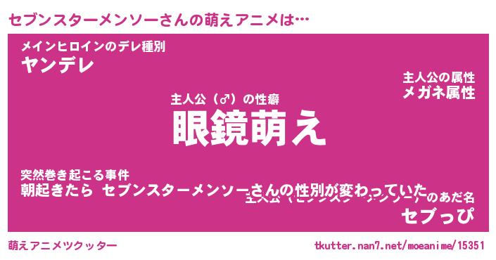 | 男性向けラノベタイトル風あだ名 | 『セブンスターメンソーの憂鬱』 |