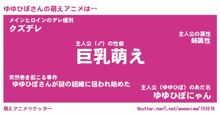 | 男性向けラノベタイトル風あだ名 | 『ゆゆひぽの憂鬱』 |