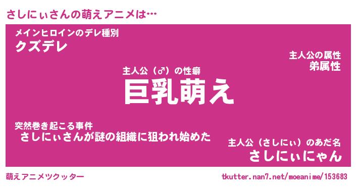 | 男性向けラノベタイトル風あだ名 | 『さしにぃの憂鬱』 |