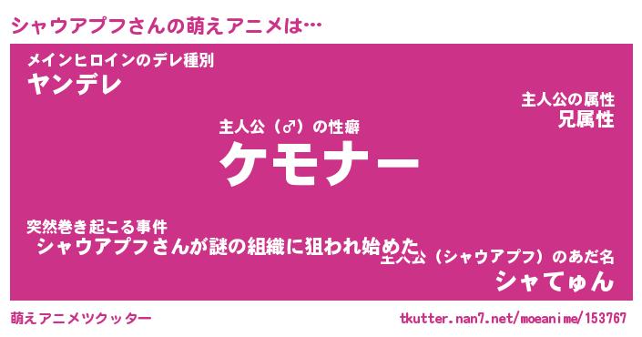 | ヒーロー風カッコイイあだ名 | 『スーパーシャウアプフ』『暗黒騎士シャ』 |