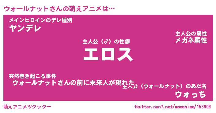 | 女子向けラノベタイトル風あだ名 | 『誰かこのウォールナットを説明してください! ~契約から始まるウェディング~』 |