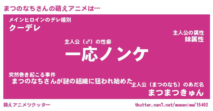| 男性向けラノベタイトル風あだ名 | 『マツノナチアートオンライン』 |
