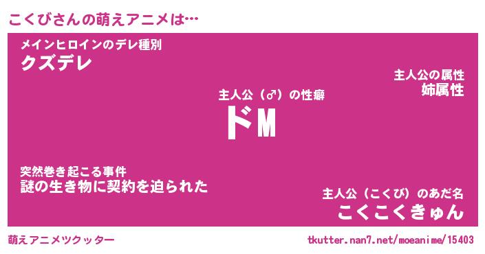 | 女子向けラノベタイトル風あだ名 | 『(仮)こくびのやんごとなき事情』 |