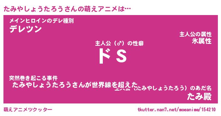 | 男性向けラノベタイトル風あだ名 | 『たみやしょうたろうの憂鬱』 |