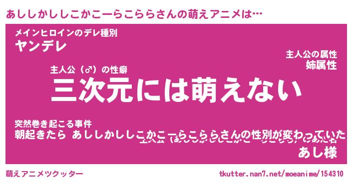 | 胡散臭い通販商品みたいなあだ名 | 『モテモテ間違いなし霊験あらたかなお札…その名も「あししかししこかこーらこらら」』 |