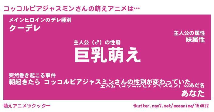 | 男性向けラノベタイトル風あだ名 | 『コッコルピアジャスミンの憂鬱』 |