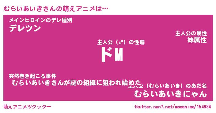 | 女子向けラノベタイトル風あだ名 | 『(仮)むらいあいきのやんごとなき事情』 |