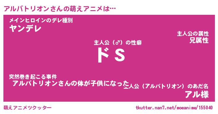 | 女子向けラノベタイトル風あだ名 | 『(仮)アルバトリオンのやんごとなき事情』 |