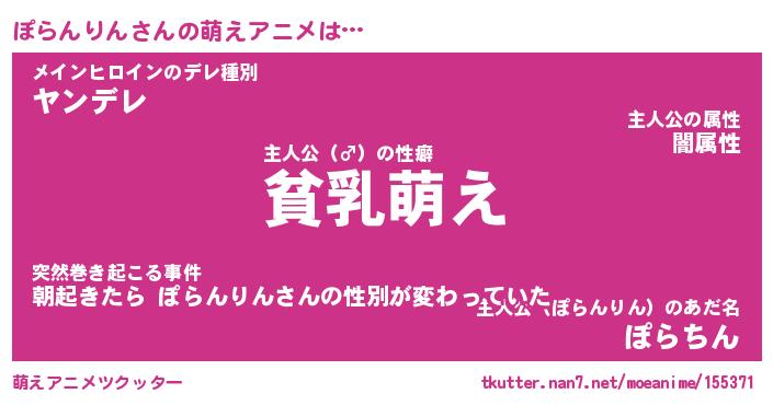 | 女子向けラノベタイトル風あだ名 | 『(仮)ぽらんりんのやんごとなき事情』 |