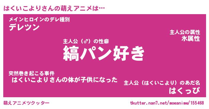| 男性向けラノベタイトル風あだ名 | 『はくいこよりの憂鬱』 |