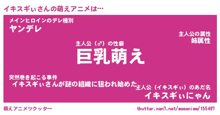 | 男性向けラノベタイトル風あだ名 | 『イキスギぃの憂鬱』 |