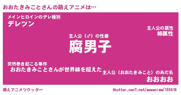 | 男性向けラノベタイトル風あだ名 | 『オオタキミコトアートオンライン』 |