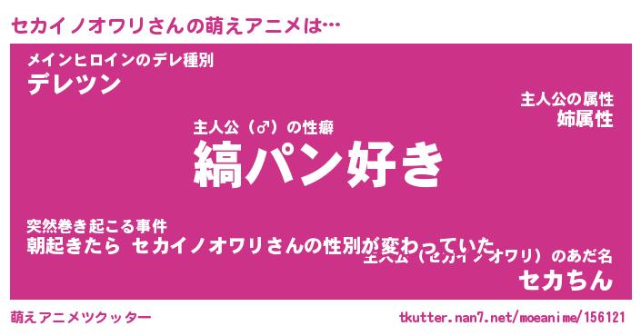 | 男性向けラノベタイトル風あだ名 | 『セカイノオワリの憂鬱』 |