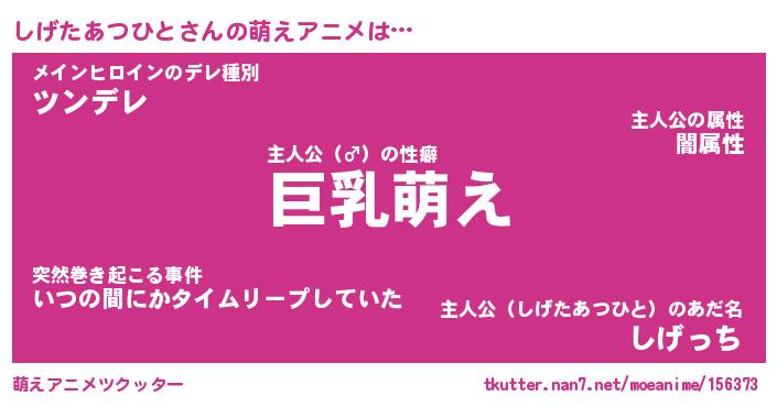 | 男性向けラノベタイトル風あだ名 | 『しげたあつひとの憂鬱』 |