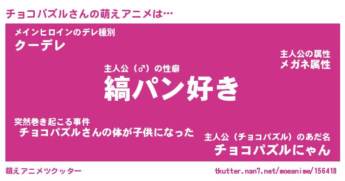 | 男性向けラノベタイトル風あだ名 | 『チョコパズルの憂鬱』 |
