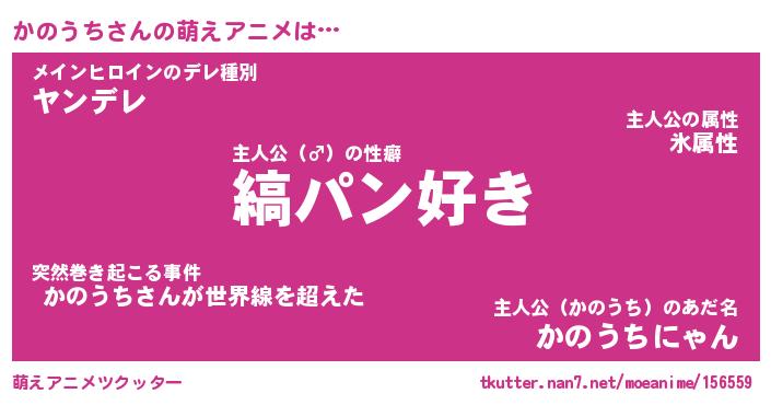 | 男性向けラノベタイトル風あだ名 | 『かのうちの憂鬱』 |