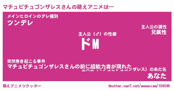 | 男性向けラノベタイトル風あだ名 | 『マチュピチュゴンザレスの憂鬱』 |