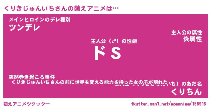 | 男性向けラノベタイトル風あだ名 | 『くりきじゅんいちの憂鬱』 |