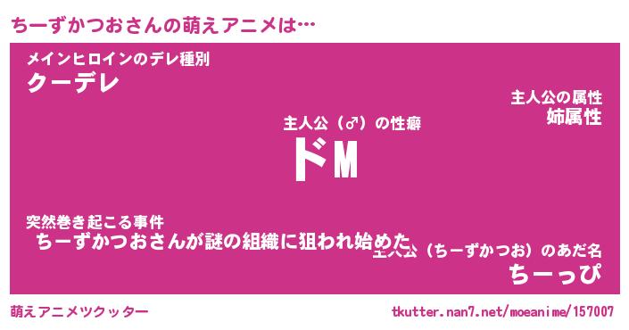 | 男性向けラノベタイトル風あだ名 | 『ちーずかつおの憂鬱』 |