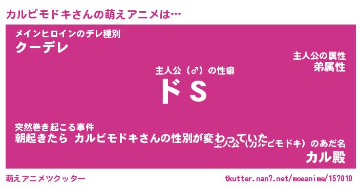 | 男性向けラノベタイトル風あだ名 | 『カルビモドキの憂鬱』 |