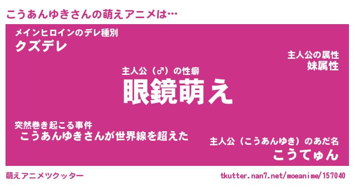| 男性向けラノベタイトル風あだ名 | 『こうあんゆきの憂鬱』 |