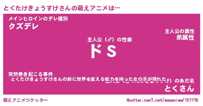 | 男性向けラノベタイトル風あだ名 | 『とくたけきょうすけの憂鬱』 |