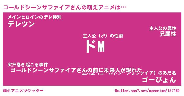 | 男性向けラノベタイトル風あだ名 | 『ゴールドシーンサファイアの憂鬱』 |