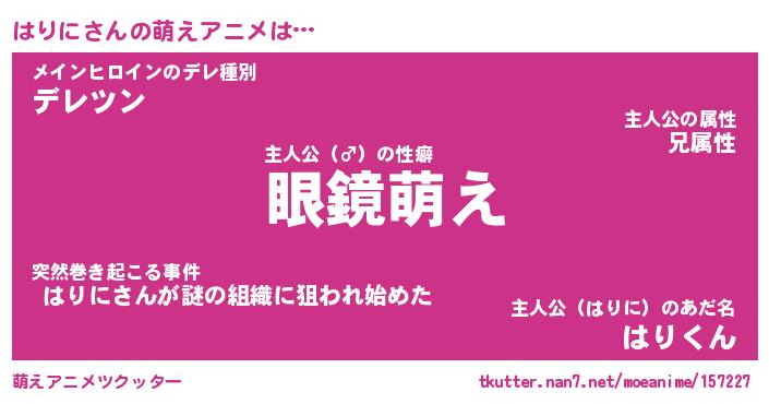| 男性向けラノベタイトル風あだ名 | 『はりにの憂鬱』 |