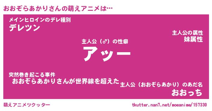 | 男性向けラノベタイトル風あだ名 | 『オオゾラアカリアートオンライン』 |