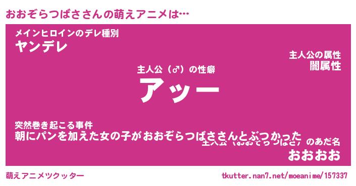 | 男性向けラノベタイトル風あだ名 | 『オオゾラツバサアートオンライン』 |