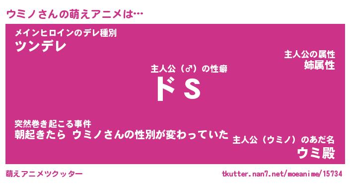 | 女子向けラノベタイトル風あだ名 | 『(仮)ウミノのやんごとなき事情』 |