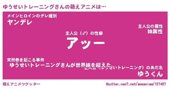 | 男性向けラノベタイトル風あだ名 | 『ユウセイトレーニングアートオンライン』 |