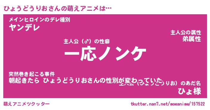 | 女子向けラノベタイトル風あだ名 | 『誰かこのひょうどうりおを説明してください! ~契約から始まるウェディング~』 |