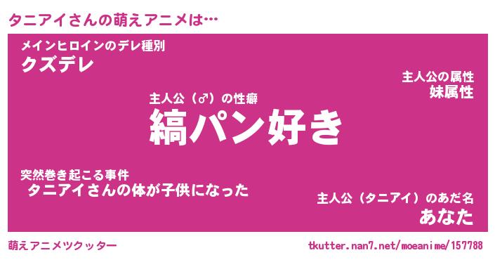 | 男性向けラノベタイトル風あだ名 | 『タニアイの憂鬱』 |