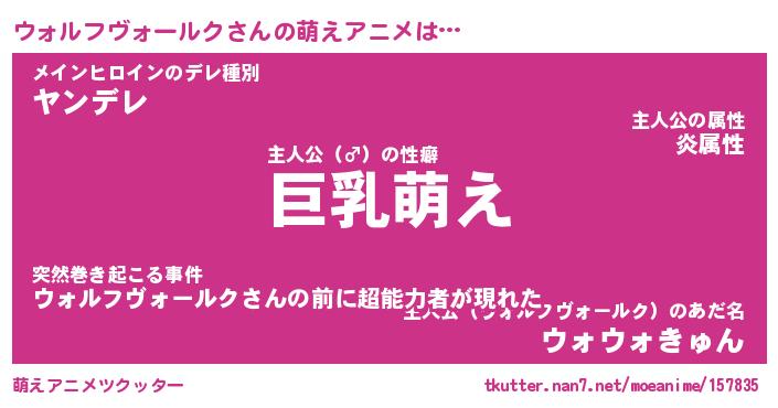| 男性向けラノベタイトル風あだ名 | 『ウォルフヴォールクの憂鬱』 |