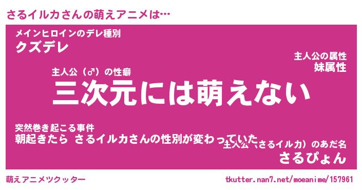 | 男性向けラノベタイトル風あだ名 | 『サルイルカアートオンライン』 |