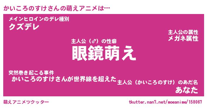 | 男性向けラノベタイトル風あだ名 | 『かいころのすけの憂鬱』 |