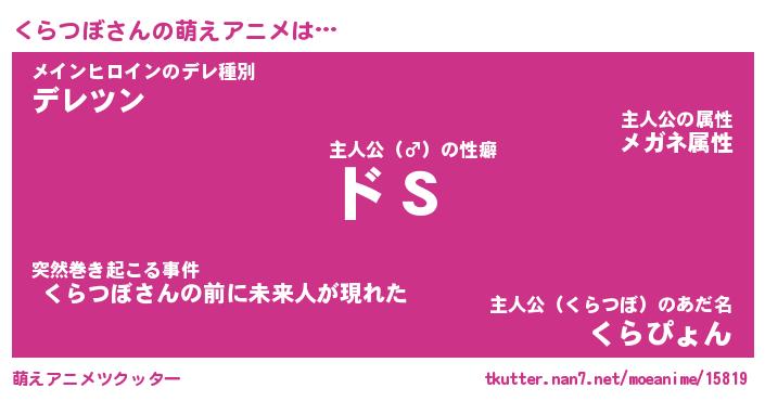 | 女子向けラノベタイトル風あだ名 | 『(仮)くらつぼのやんごとなき事情』 |