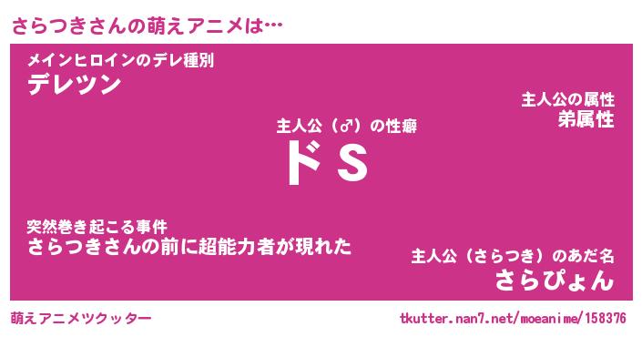 | 男性向けラノベタイトル風あだ名 | 『さらつきの憂鬱』 |