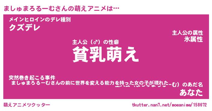 | 胡散臭い通販商品みたいなあだ名 | 『必ず成功するブレスレット…その名も「ましゅまろるーむ」』 |