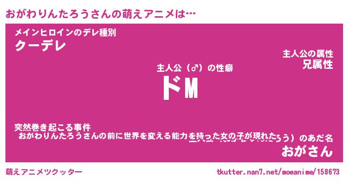 | 女子向けラノベタイトル風あだ名 | 『(仮)おがわりんたろうのやんごとなき事情』 |