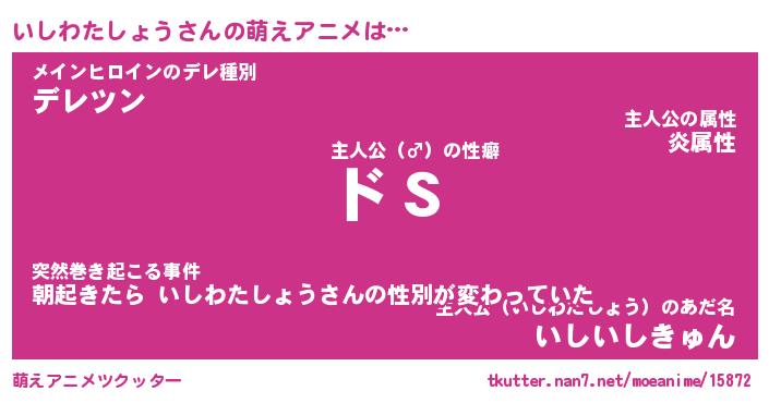 | 女子向けラノベタイトル風あだ名 | 『(仮)いしわたしょうのやんごとなき事情』 |