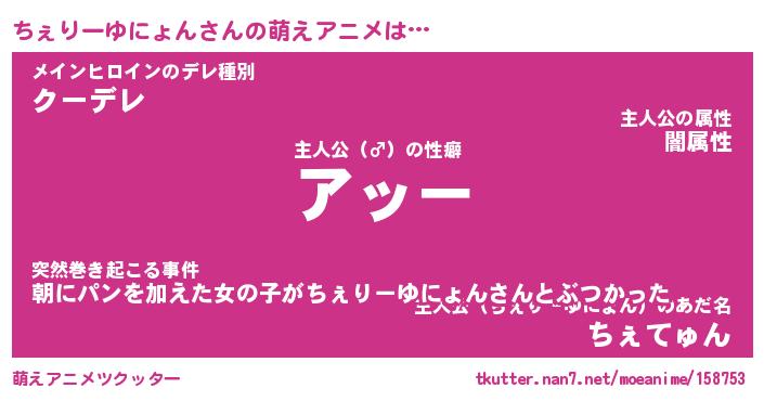 | 肩書あだ名 | 『ちぇりーゆにょん店長』 |