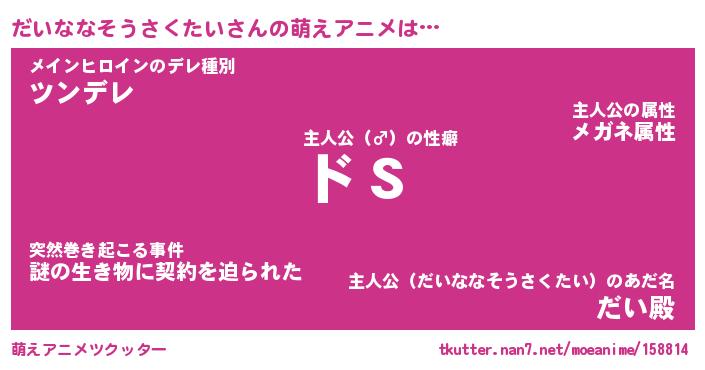 | 男性向けラノベタイトル風あだ名 | 『だいななそうさくたいの憂鬱』 |