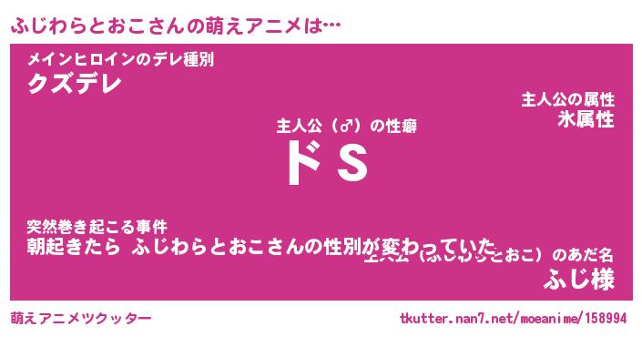 | 男性向けラノベタイトル風あだ名 | 『ふじわらとおこの憂鬱』 |