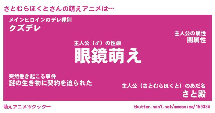| 男性向けラノベタイトル風あだ名 | 『さとむらほくとの憂鬱』 |