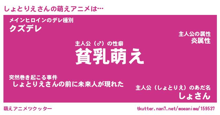 | 男性向けラノベタイトル風あだ名 | 『しょとりえの憂鬱』 |