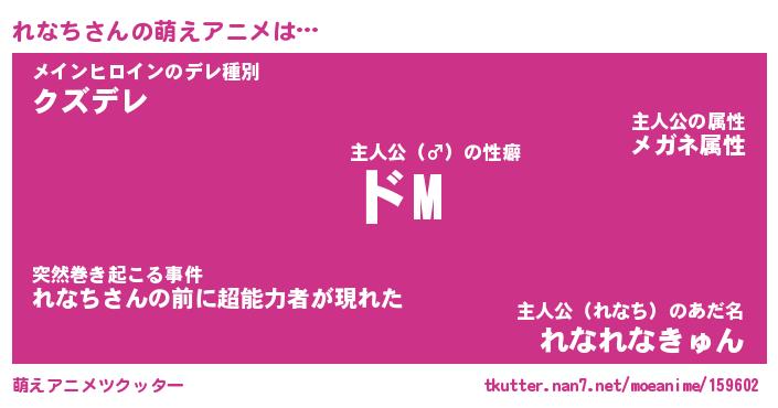 | 男性向けラノベタイトル風あだ名 | 『れなちの憂鬱』 |